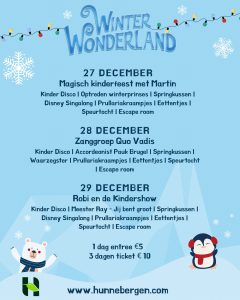 Stap deze winter samen met het hele gezin in een wereld vol magie en gezelligheid tijdens Winter Wonderland in Openluchttheater de Hunnebergen! Op 27, 28 en 29 december transformeert ons theater tot een betoverend winterparadijs.
